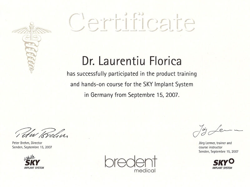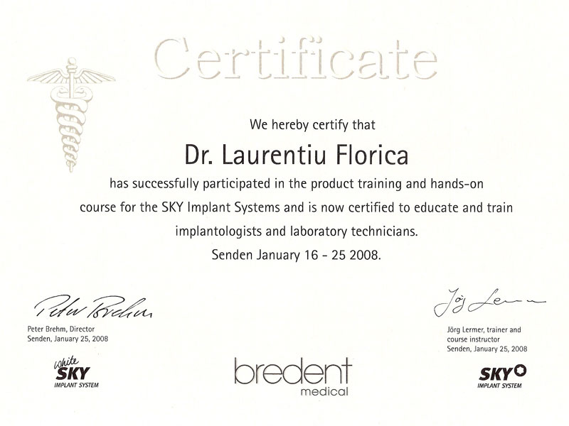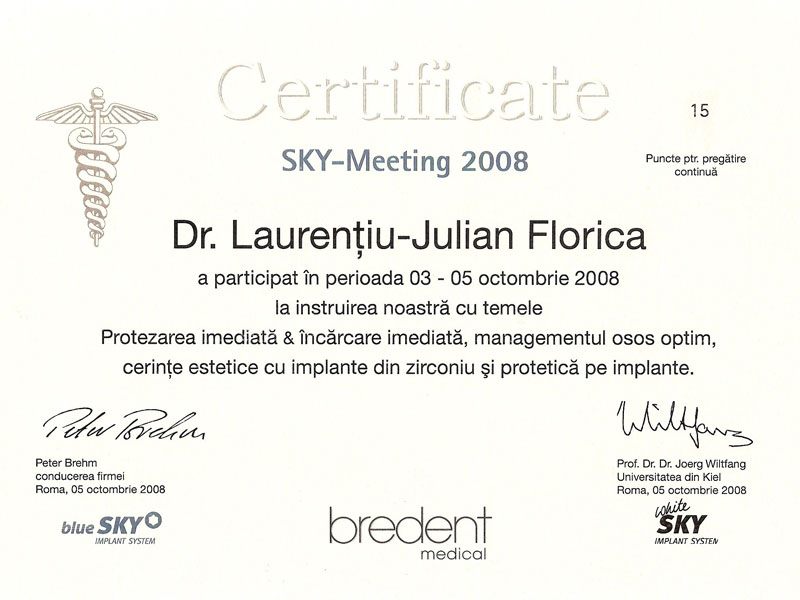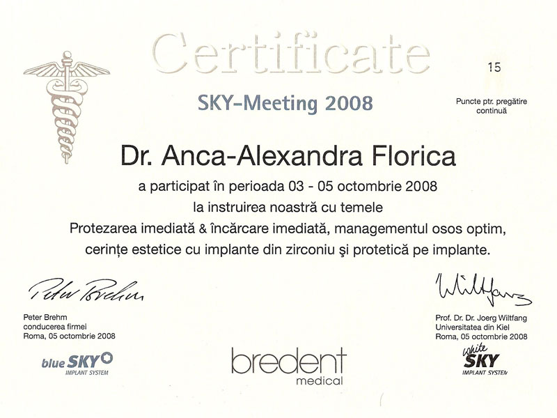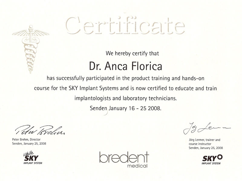 Absolvent al Universitatii de Medicina si Farmacie Bucuresti "Carol Davila" - Facultatea de Stomatologie promotia 1995