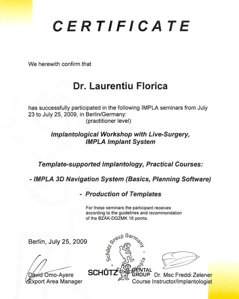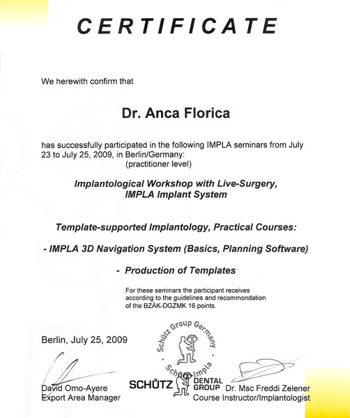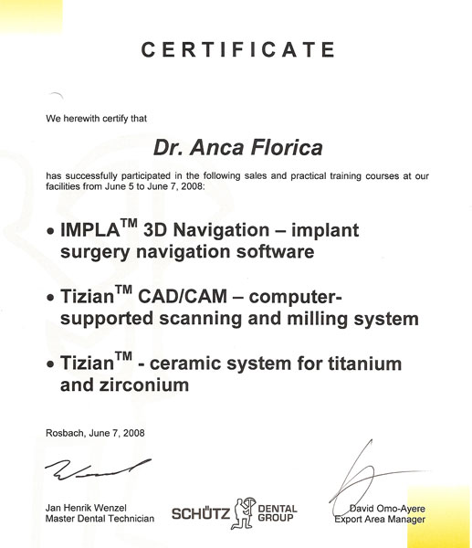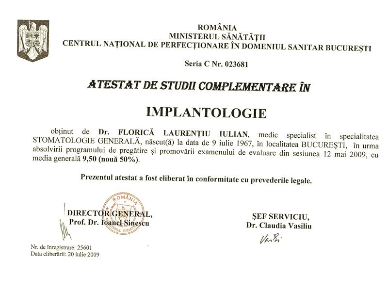 Absolvent al Universitatii de Medicina si Farmacie Bucuresti "Carol Davila" - Facultatea de Stomatologie promotia 1993